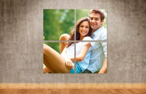 Você pode surpreender a pessoa amada com um lindo quadro com a foto de vocês. Veja que lindo o painel com quatro quadros que se completam para formar a imagem do casal. É muito fácil e muitas lojas fazem esse tipo de presente.