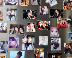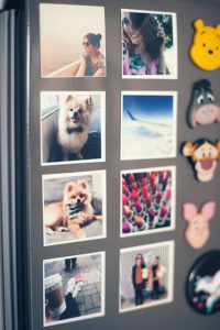 Que tal colocar algumas fotos do casala na geladeira? Dá para fazer esses imãs personalizados usando manta magnética adesiva. É bem simples de fazer e é um presente super carinhoso, que vai dar um toque de amor à decoração da casa.