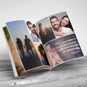 Ou, que tal, fazer uma revista personalizada? Conte a história de você com frases, alguns textos e muitas fotos em uma revista personalizada. Aqui também vale a ideia de fingir comprar a revista na banca.