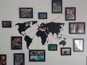 Olha essa decoração incrível! Se vocês moram juntos ou se você tem liberdade para criar uma decoração assim na casa do seu (sua) amado (a), pode apostar que é uma ótima ideia. Esse é um presente perfeito para os viajantes de plantão. A cada nova viagem, uma nova marcação e uma nova foto.