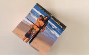 O cubo mágico dá um pouco mais de trabalho para fazer, mas é também um presente criativo e bem legal. Assim, que receber poderá escolher uma foto diferente a cada dia para decorar a mesa.