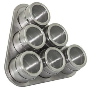 Ter os temperos à mão sempre ajudam e tornam a cozinha muito mais prática. Nós encontramos esses porta-temperos com imã, que são colocados na lateral da geladeira. Um conjunto como esse você irá encontrar por cerca de 40 reais.