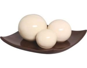 Enfeites de centro de mesa são ótimos. Existem opções super em conta e bem bonitas. Essa peça com esferas de cerâmica custam em médio 80 reais.